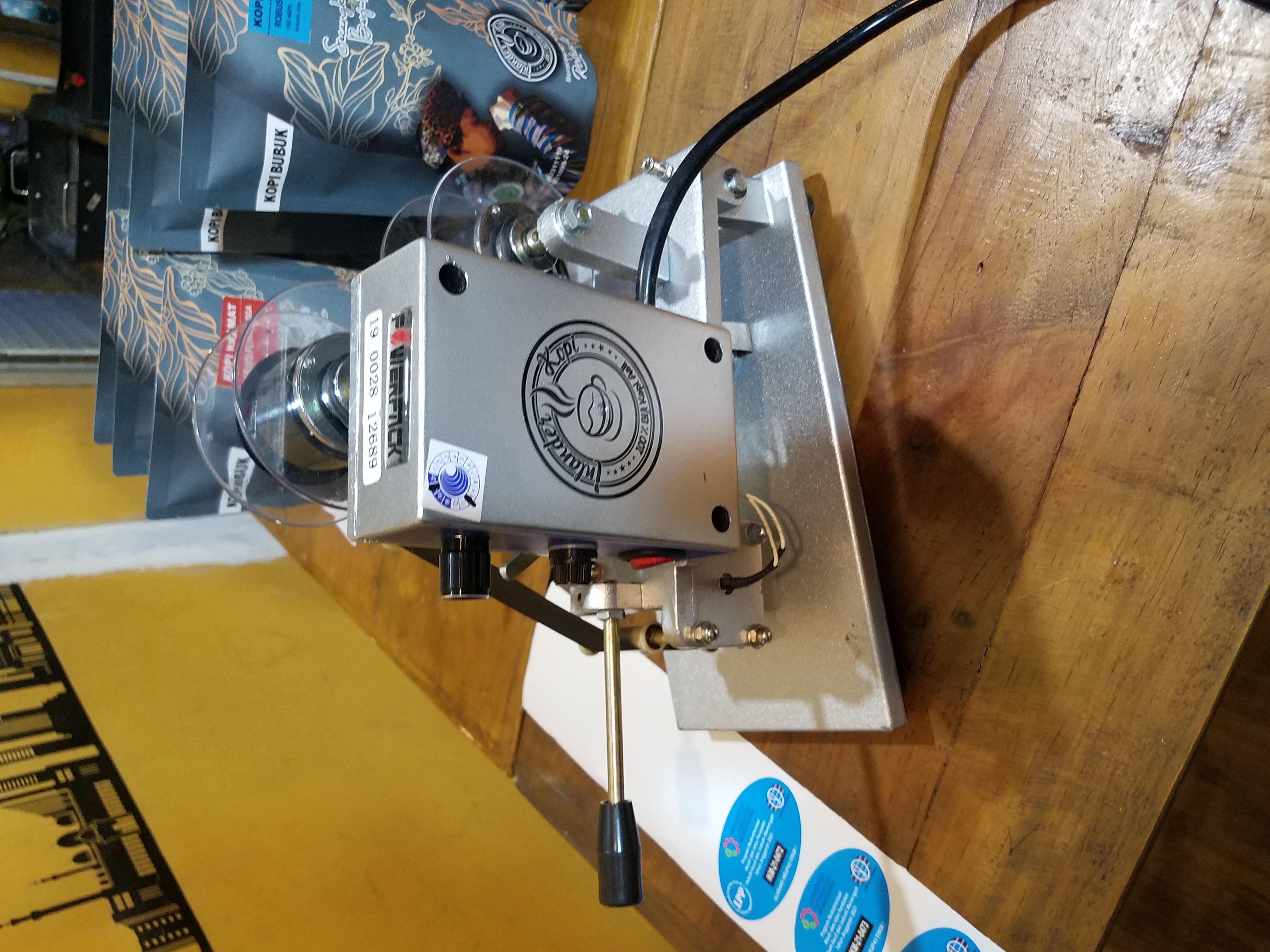 Voltase : 220 V / 50 Hz, Daya : 40 Watt, Kapasitas Baris : 3 Baris, Kapasitas Huruf : 15 Huruf/ Baris, Suhu : 0-200 °C, Lebar pita : 3 cm, Jenis tinta : Ribbon Tape, Berat : 2,5 Kg, Dimensi 22,5 x 20 x 15,5 cm