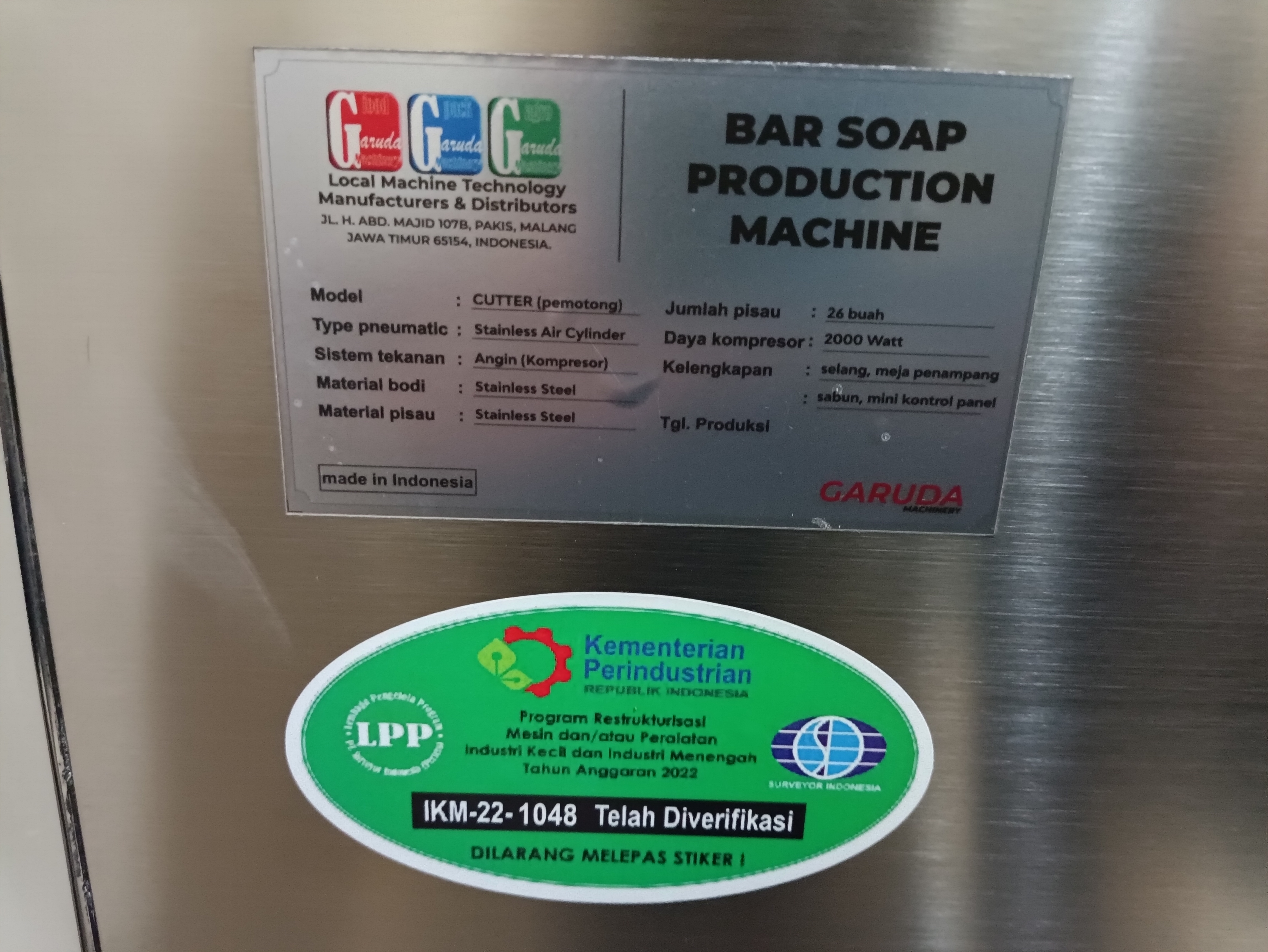 Mesin pemotong sabun batang dengan sistem angin, Kapasitas 20 pcs/ proses, Material stainless steel