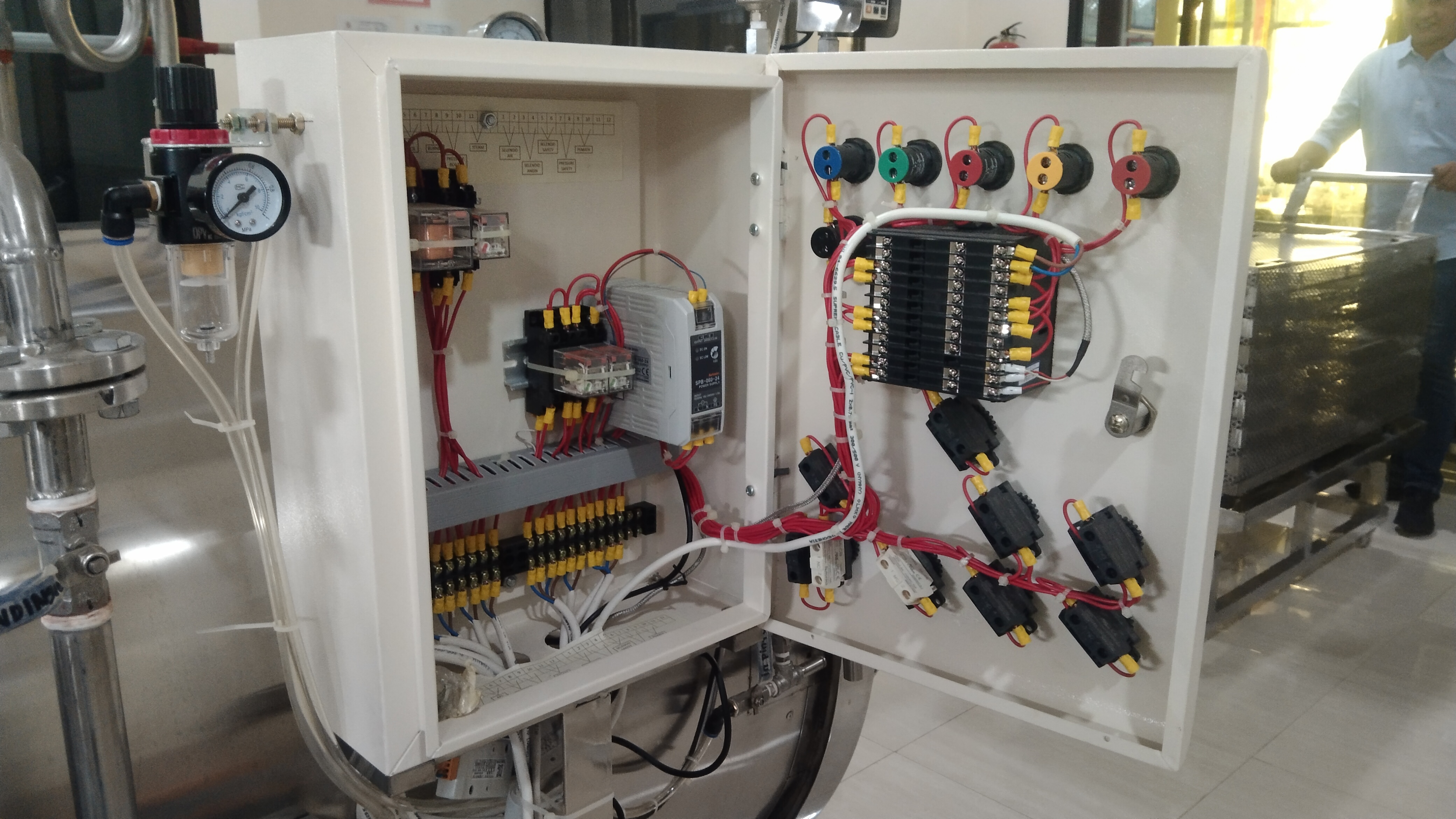 | Spesification | Sistem Kontrol Otomatis Bahan Stainless Steel Sistem Pencucian Radial Volume Tabung 500 Liter Dimensi Tabung 75x120cm Temperatur Digital Support Data Logger Mesin Pendukung 1 Set Boiler Pelengkap 1 Set Kompor + Regulator |