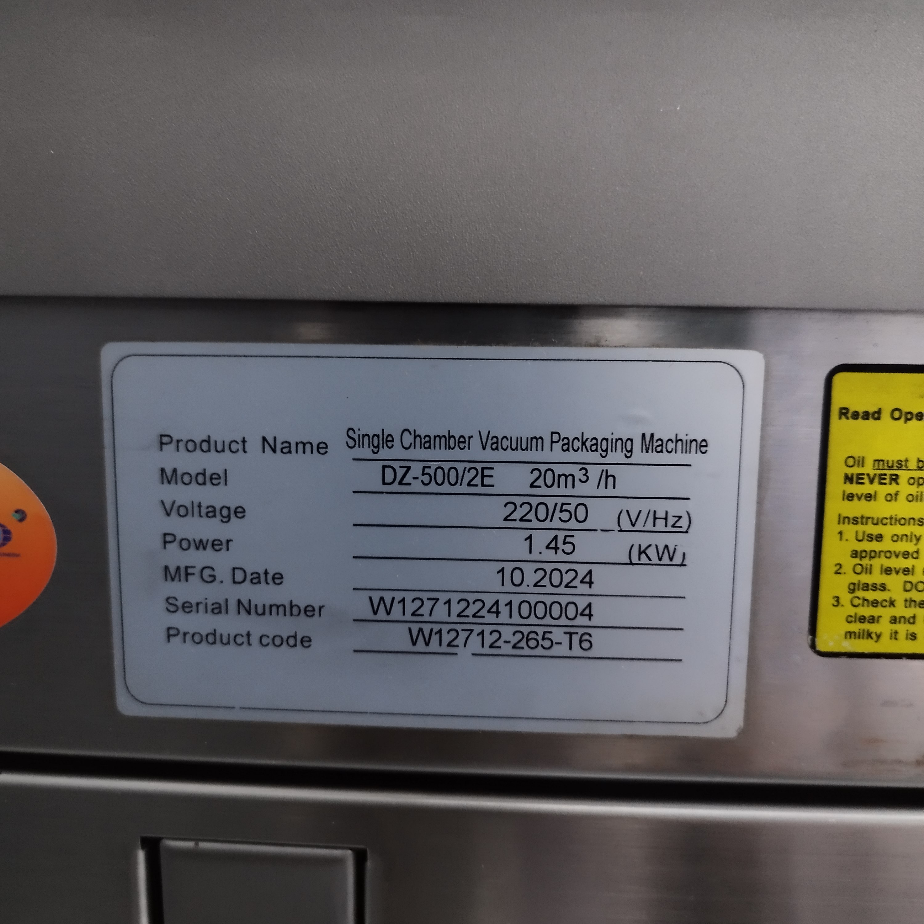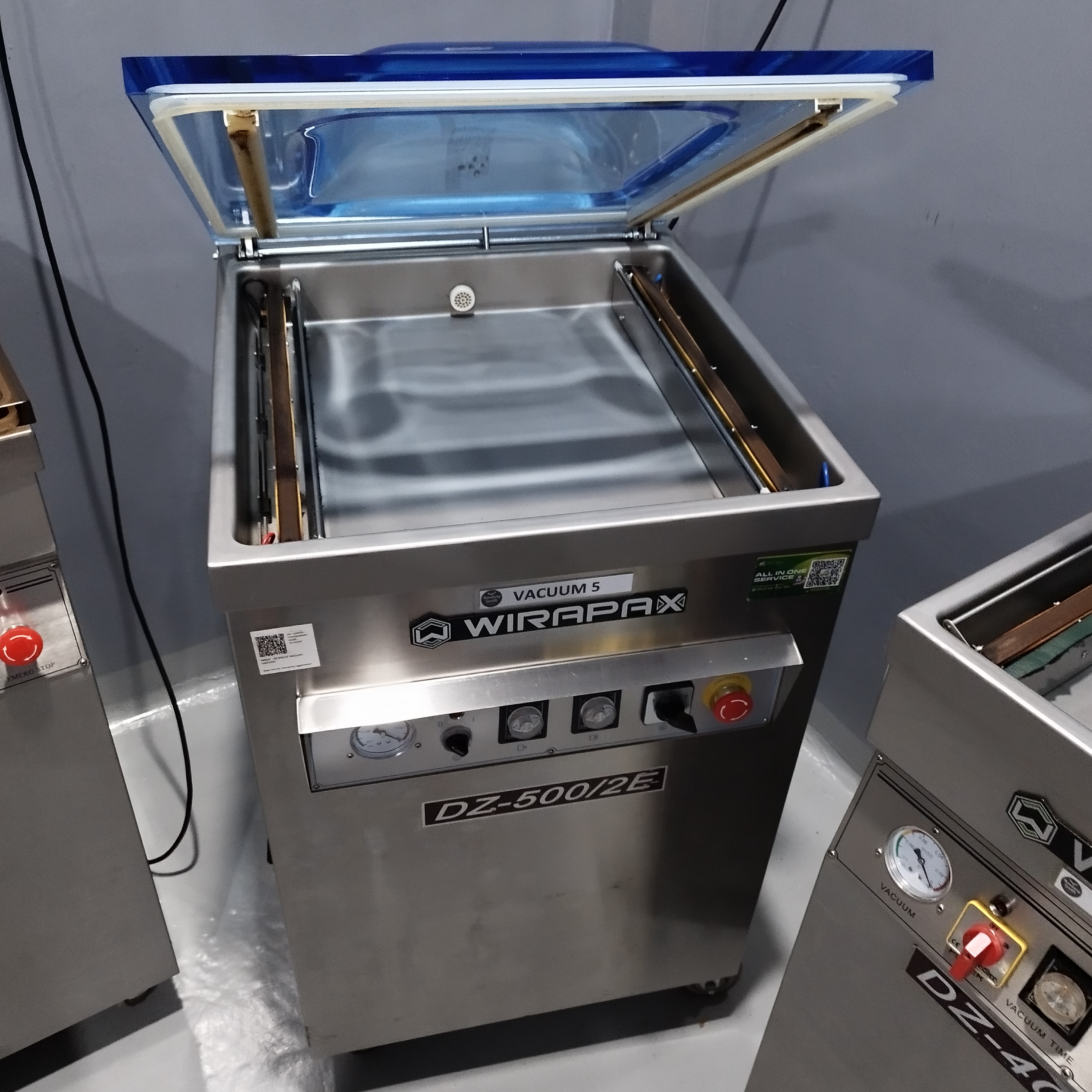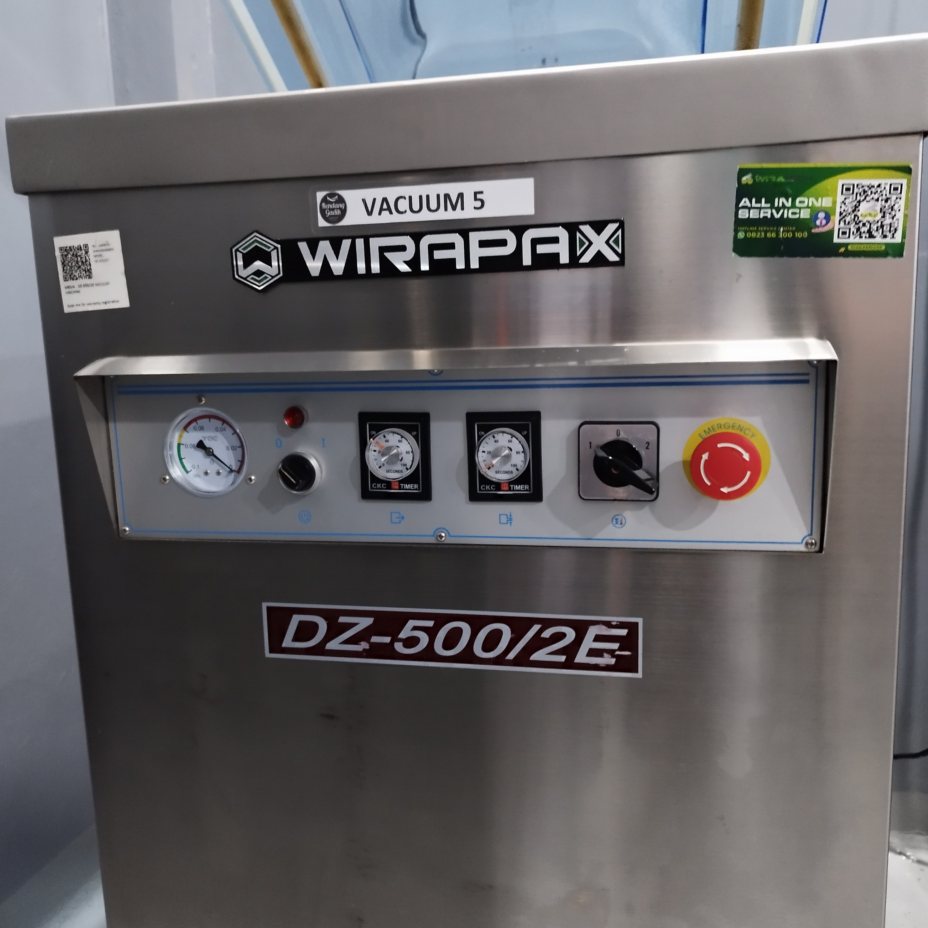 | Spesification | Dimensi Packing Mesin : 76 x 69 x 108 cm Dimensi Ruang Vakum : 52 x 52 x 7 cm Lebar Seal : 500 x 8 mm Voltase : 220V Power : 900 Watt Sealing Power : 800 Watt |