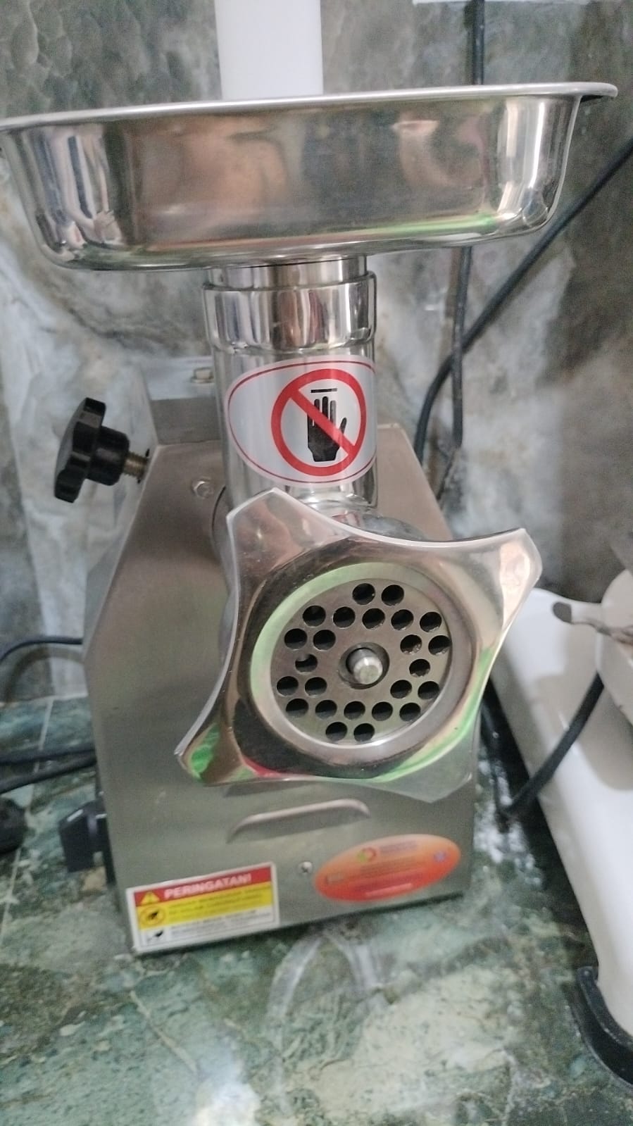 | Spesification | Watt : 800 watt Material : Stainless Steel Production Capasitas : 120 kg/hour Voltage : 220v/50HZ/1p |