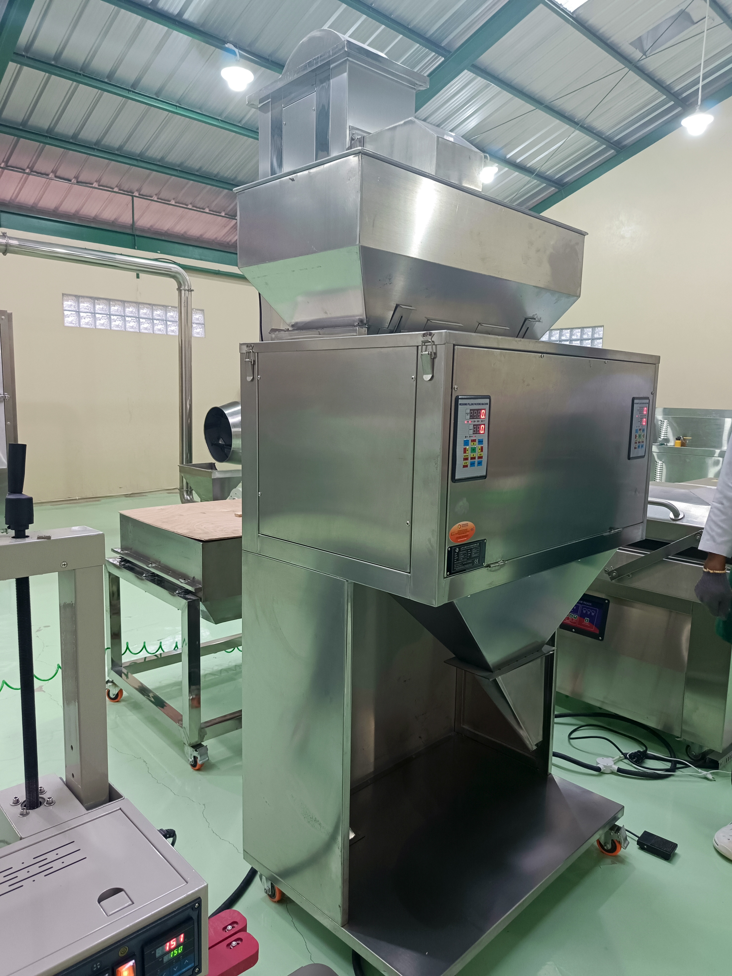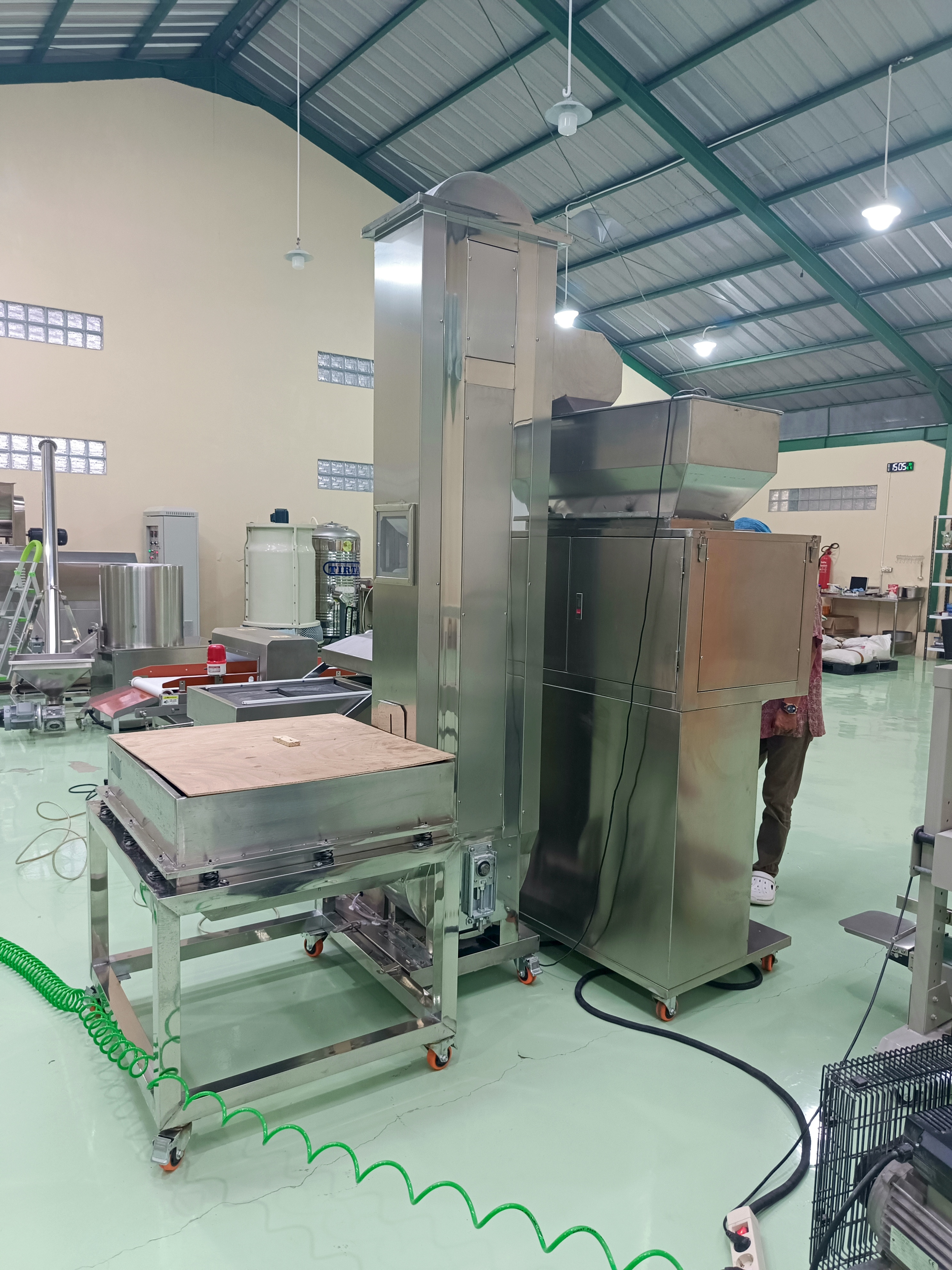 | Spesification | Range Packing : 0,1-10 kg, Capacity : 5-15 Bag/min, Power : 0,8 kW, Voltage : 220 Volt/ 50 Hz, 1 Phase, Bucket Elevator Feeding : 190 cm, Hopper Capacity : 1m³, Power : 600 Watt, Voltage : 220 Volt/ 50 Hz |