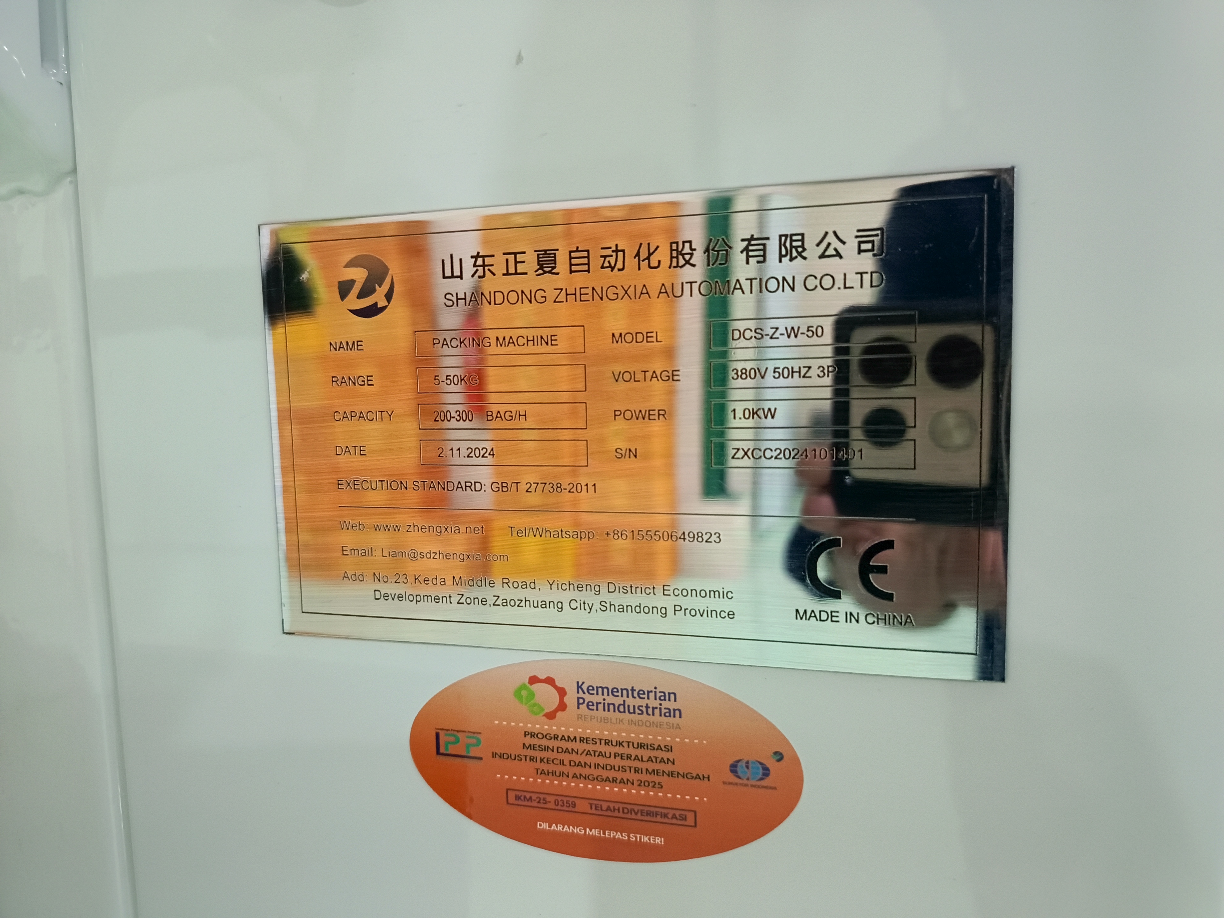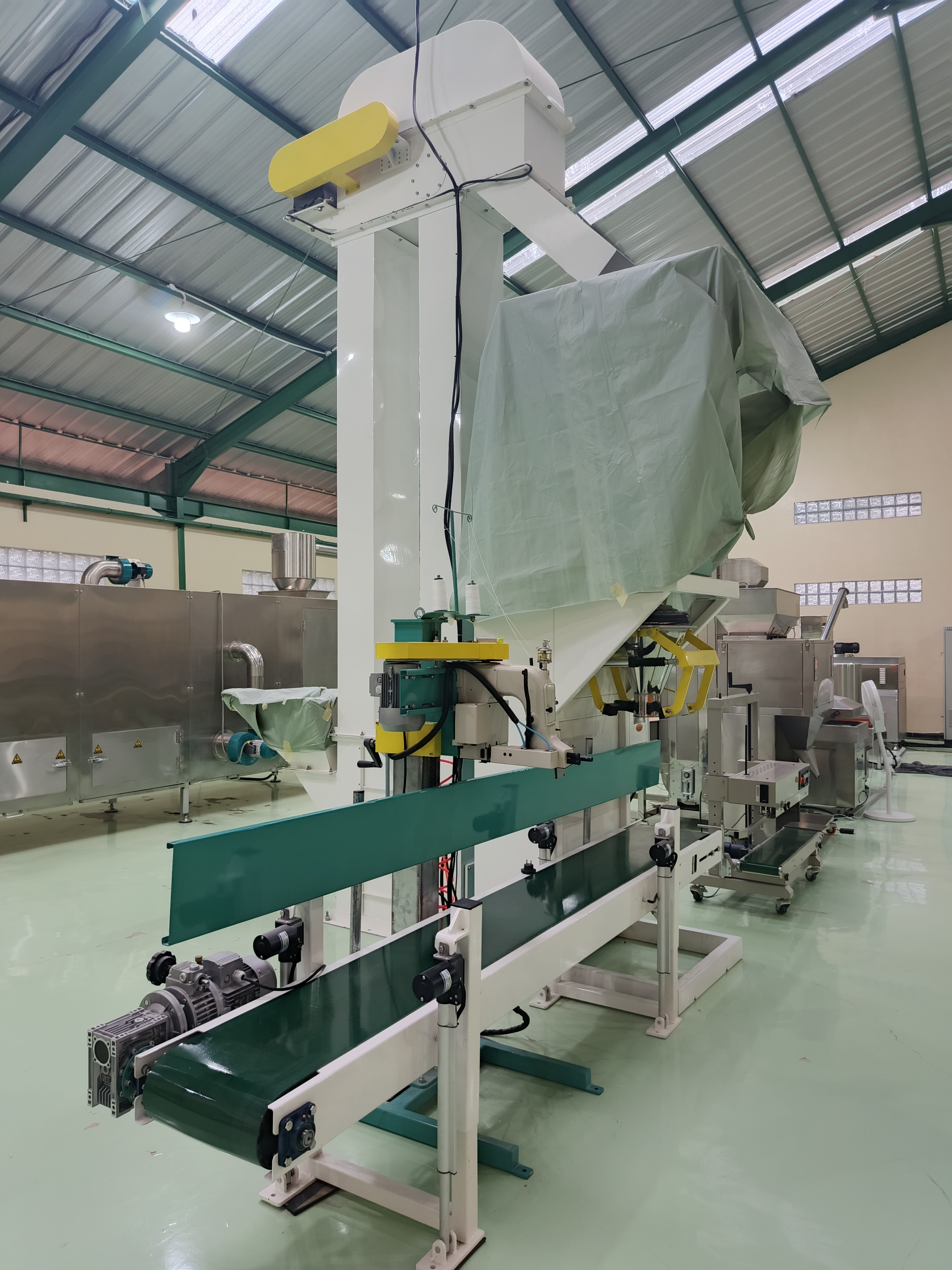 | Spesification | Range Packing : 5-50 kg, Capacity : 200-300 Bag/min, Power : 1 kW, Voltage : 380 Volt/ 50 Hz, 3 Phase, Bucket Elevator : Hopper Capacity : 2-5 Ton/hour, Power : 1 kW, Voltage : 220/380 Volt/ 50 Hz |