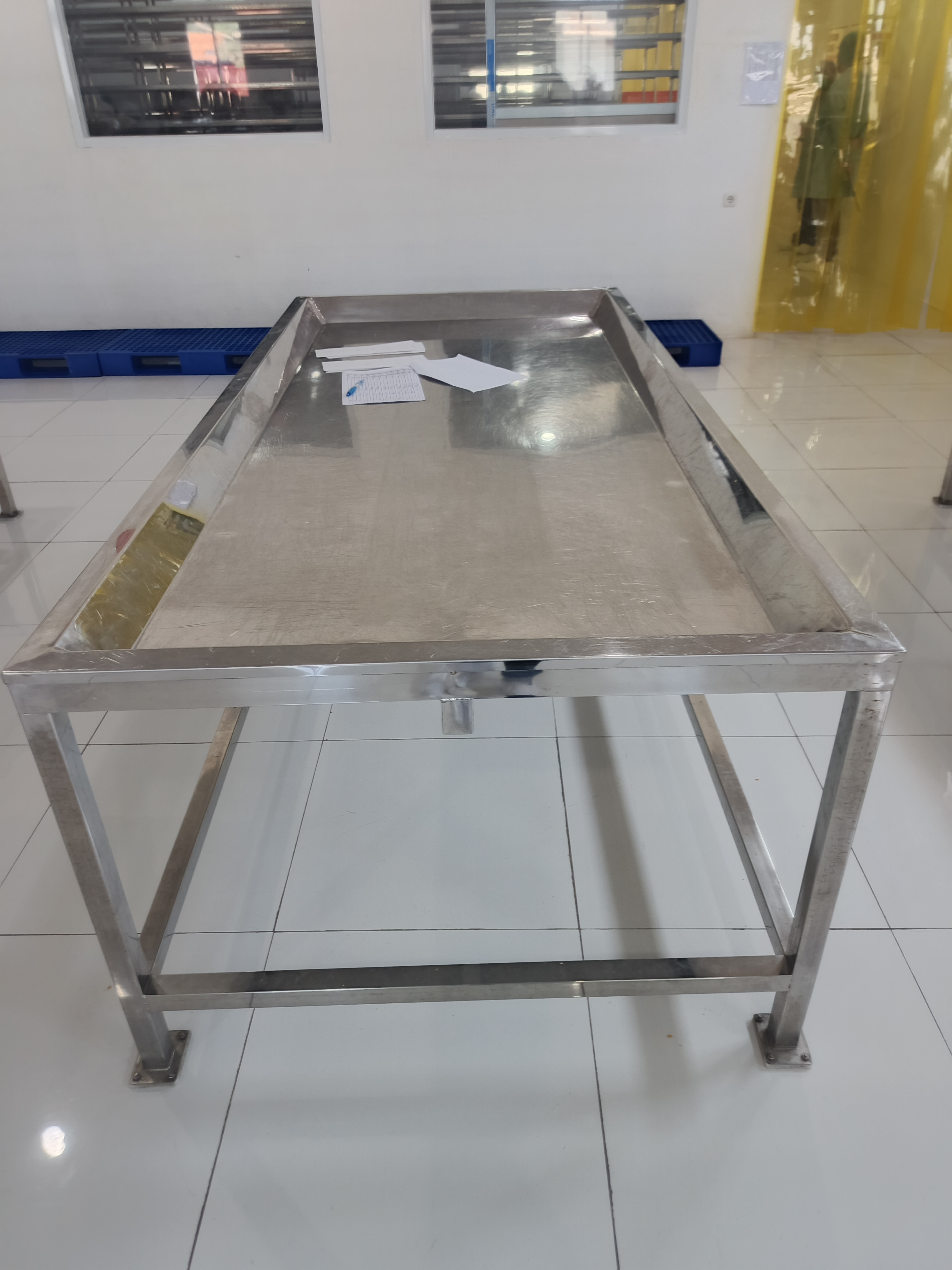 | Spesification | Ukuran : 2400*1250*800 mm, Material Atas : Stainless 304, Material Rangka : Pipe Hollow : Stainless 201 |
