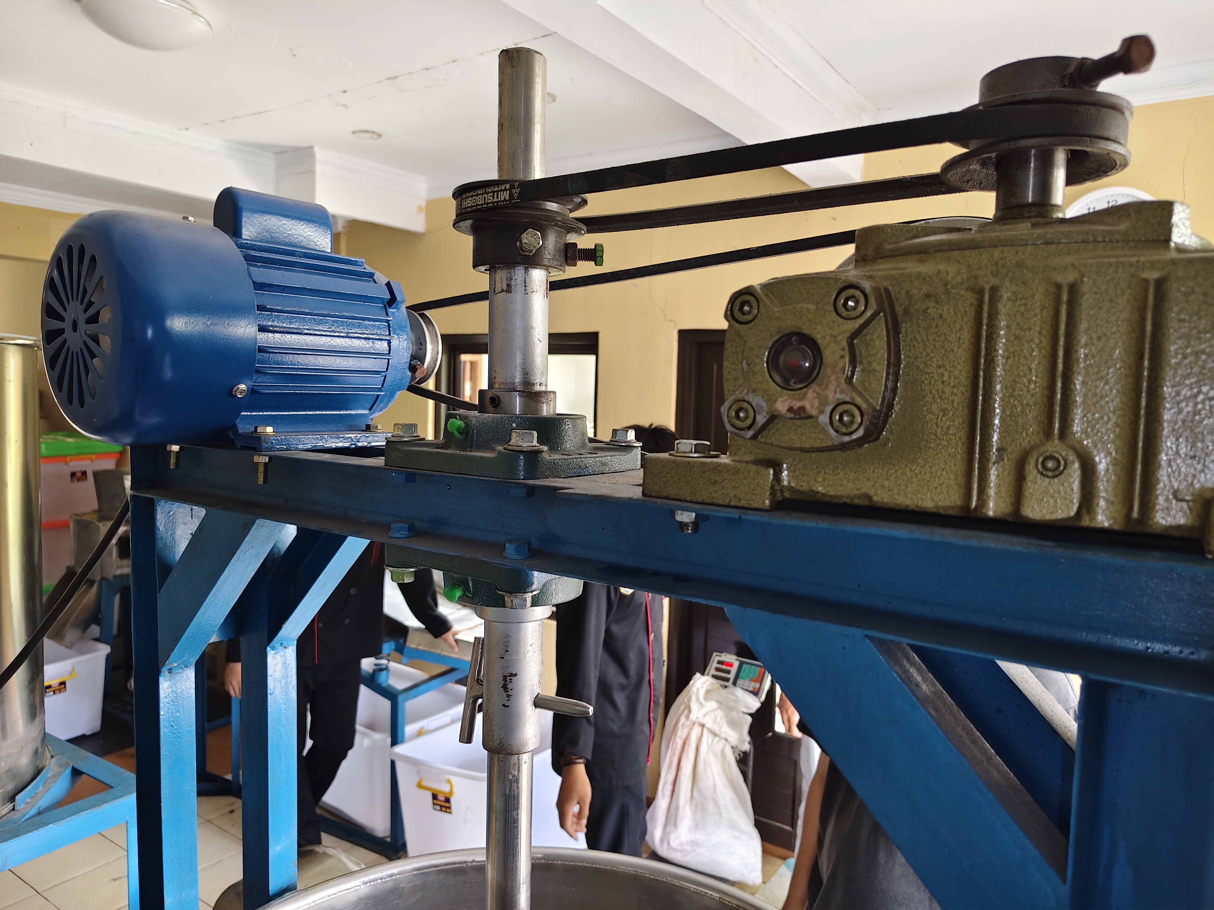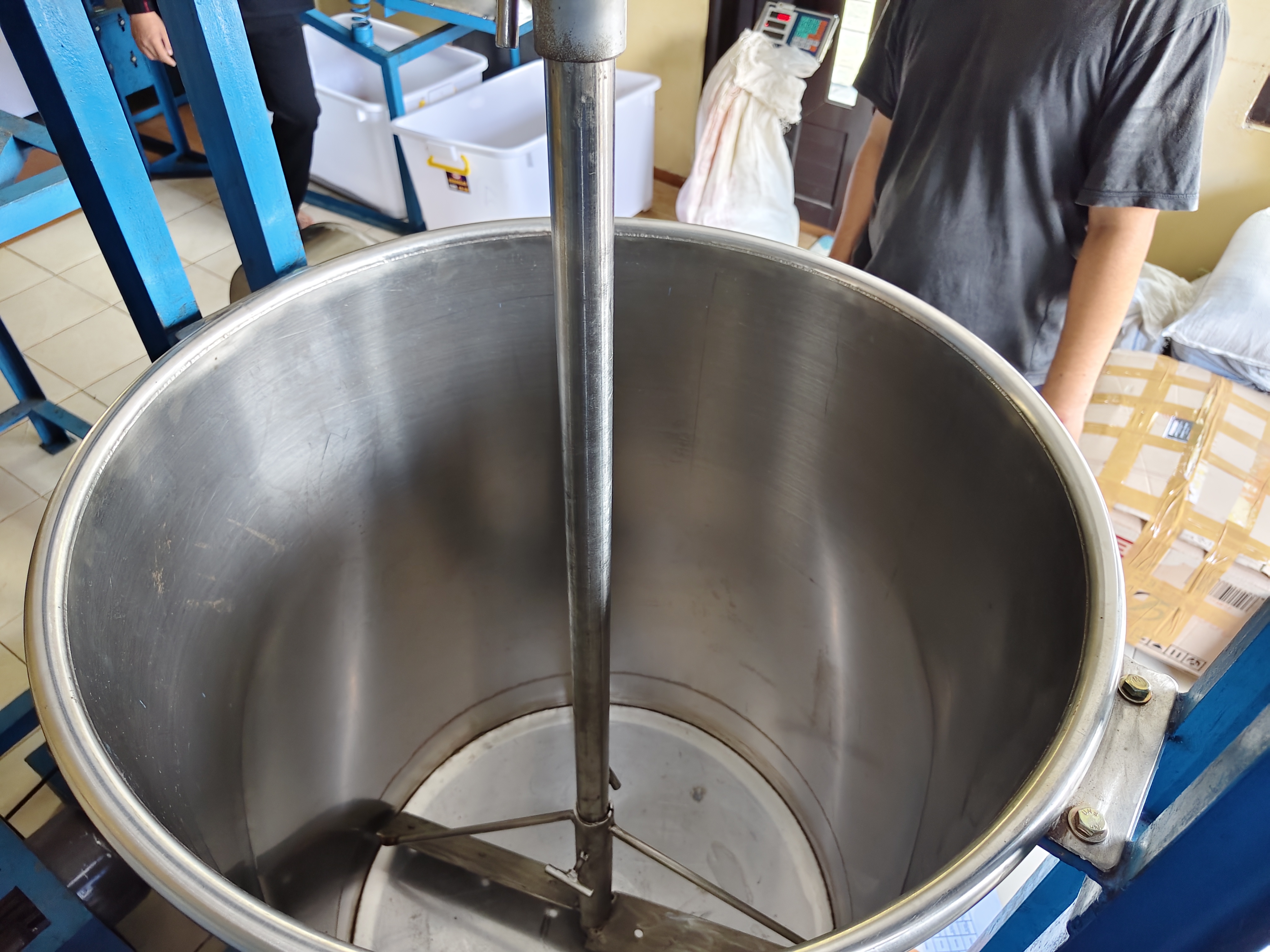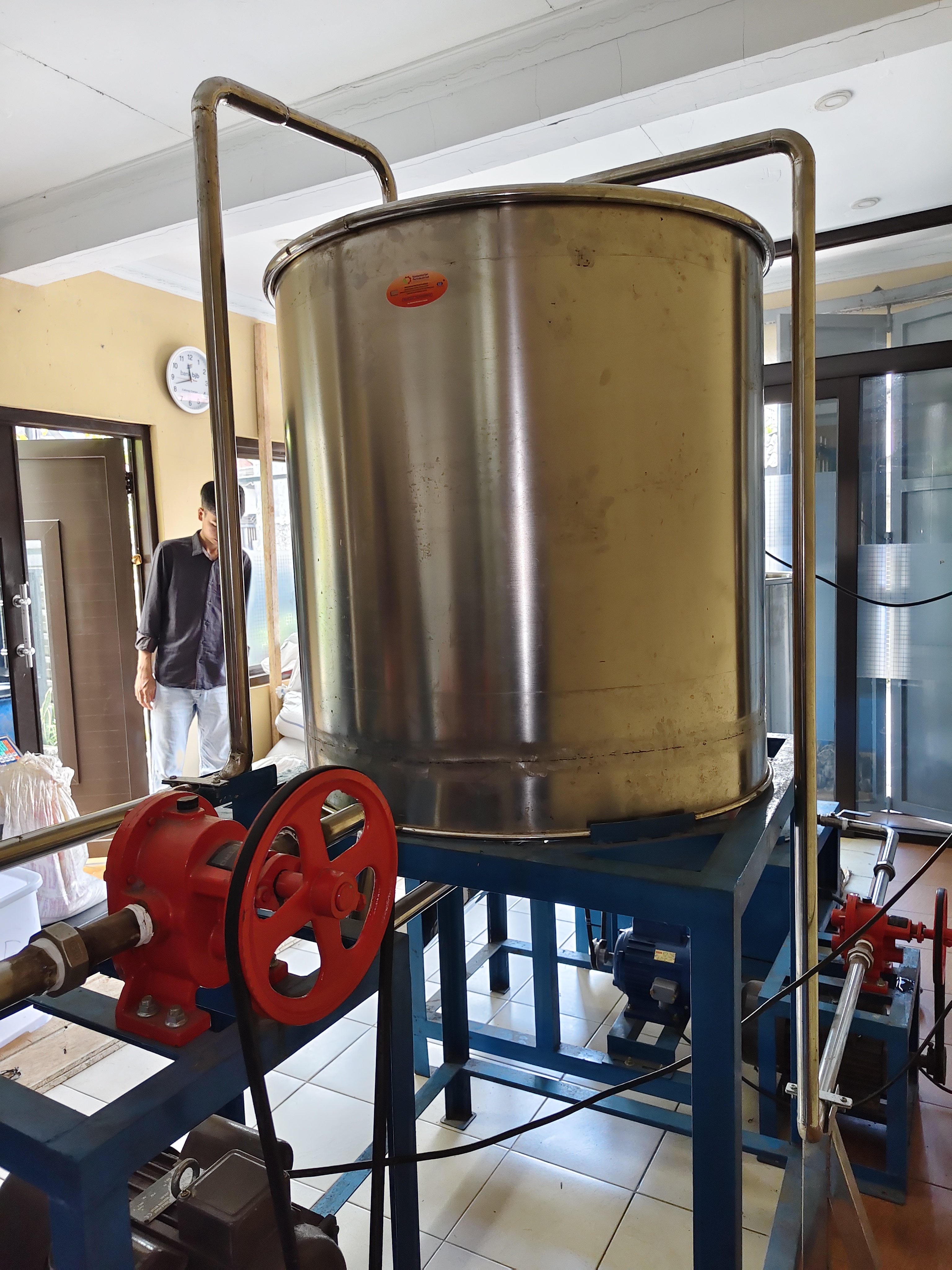 | Spesification | Ukuran : 122*87*166 cm, Kapasitas Produksi : 100 liter/batch, Motor Power : 0,5 HP dan 1,5 HP, Speed Motor : 1400 rpm, Material Body Tabung : Stainless Steel |
