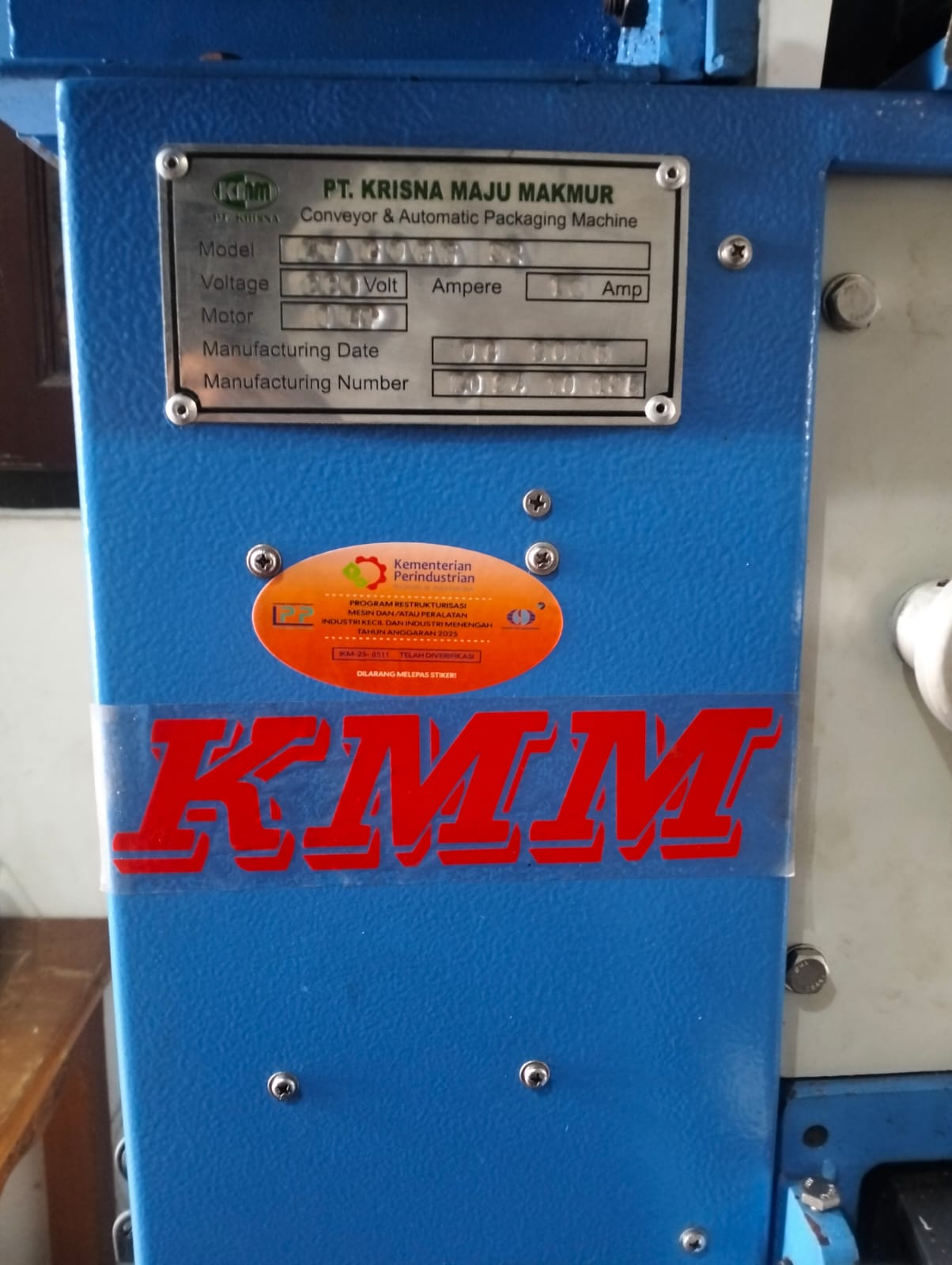 | Spesification | Produk : Powder, Seal Dimension : Width 50-140 mm, Length : 50-160 mm, Kapasitas packing : Max. 250 gram, Speed : 40-100 pcs/min, Power : 1 HP, 220 Volt/50 Hz |