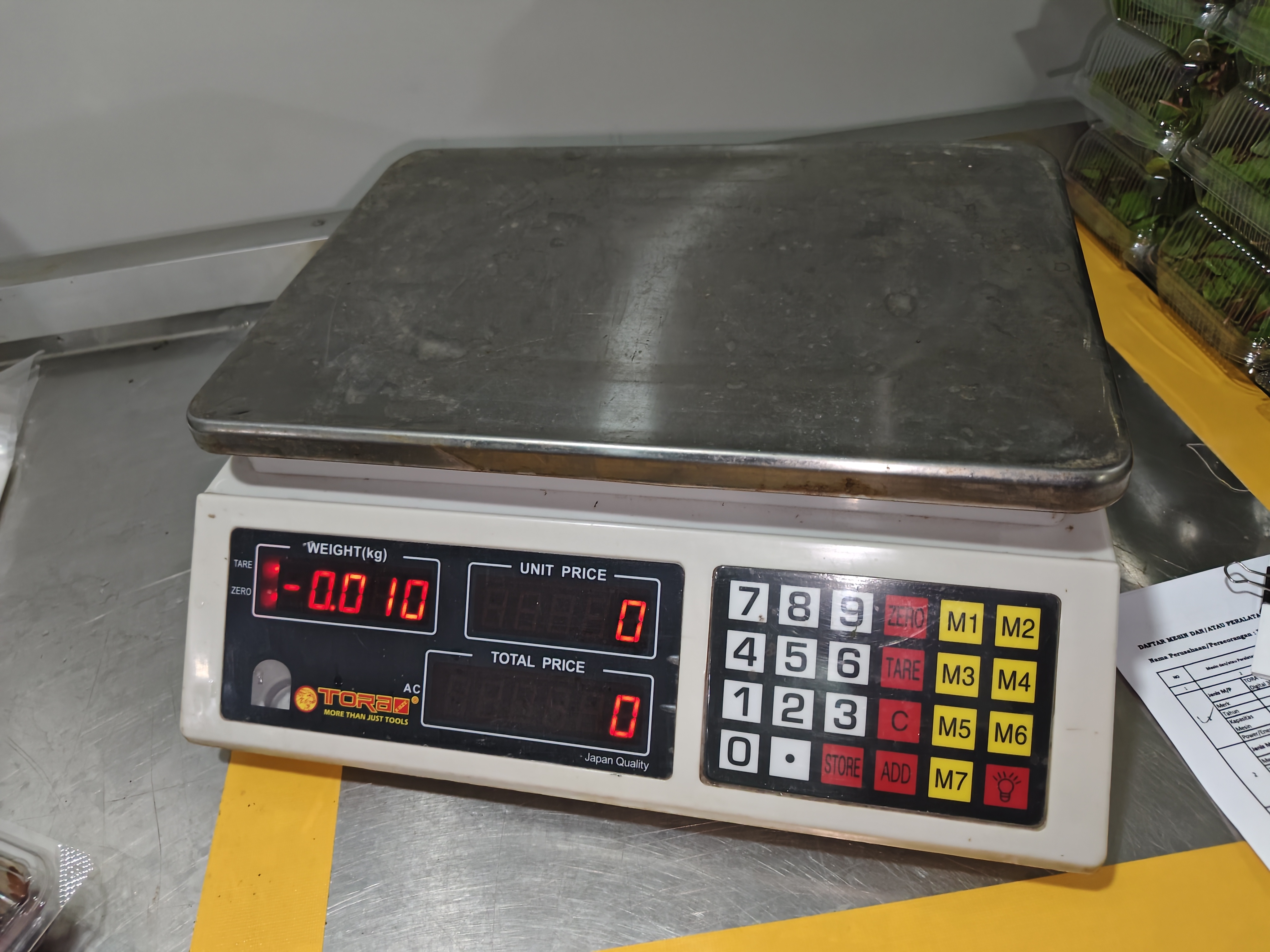 | Spesification | Max Weight : 30 kg Division Value : 5 g Min Weight : 220 g Input Voltage : AC220V |