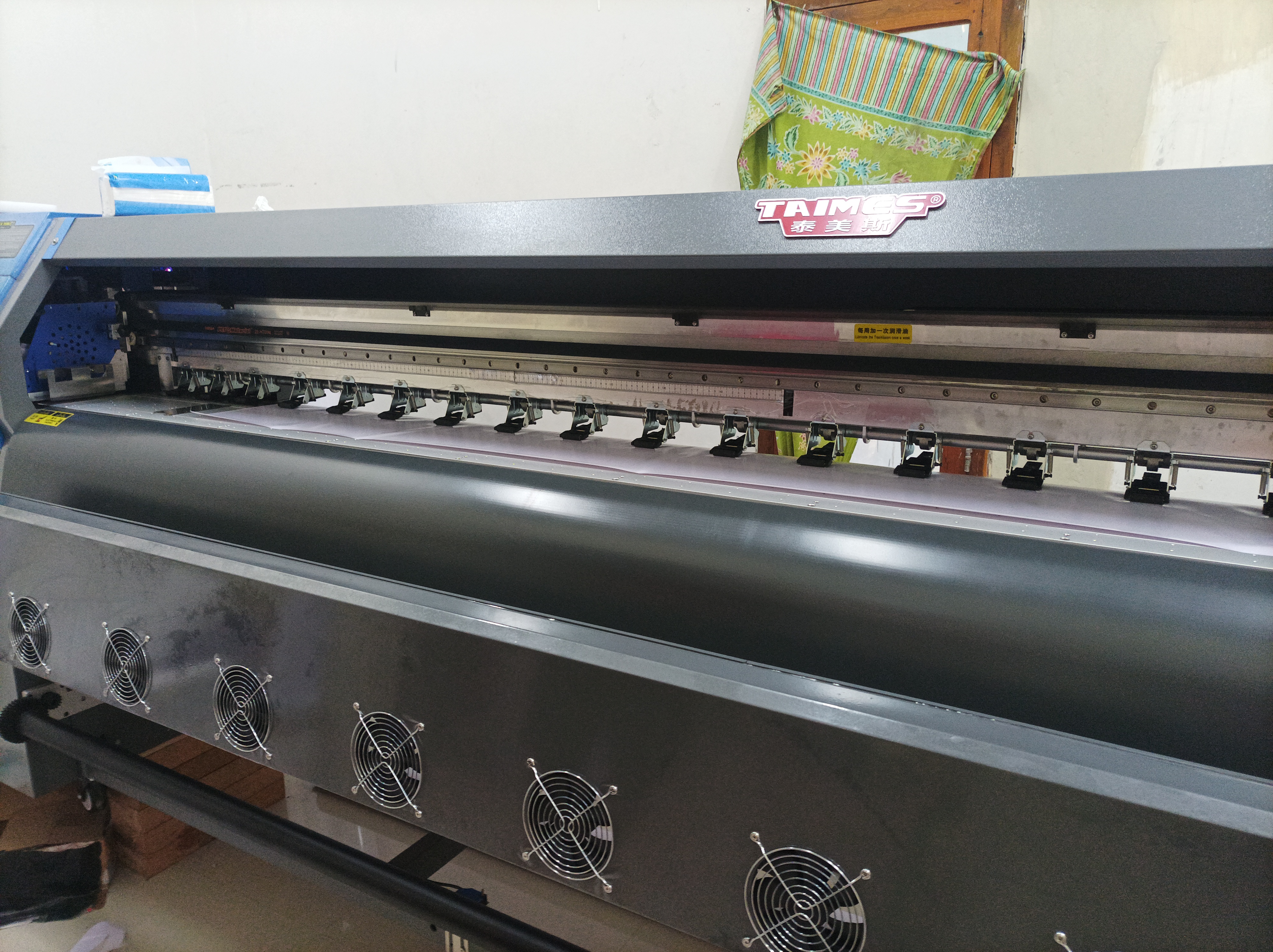 | Spesification | Print Head : Konica 512I -8 Head, Maximum Print Width : 3200mm Printing Resolution : 480DPI (Physical), Printing Speed : Up to 240sqm/h, Ink Type : Low Solvent Ink, Color 4 Colors (C , M , Y , K ), Printhead Height : 2 to 4 mm Above Media Adjustable, Input Power : AC 220V/50Hz, Printing : 1000 Watt/5A, Heating : 2200 Watt/10A |