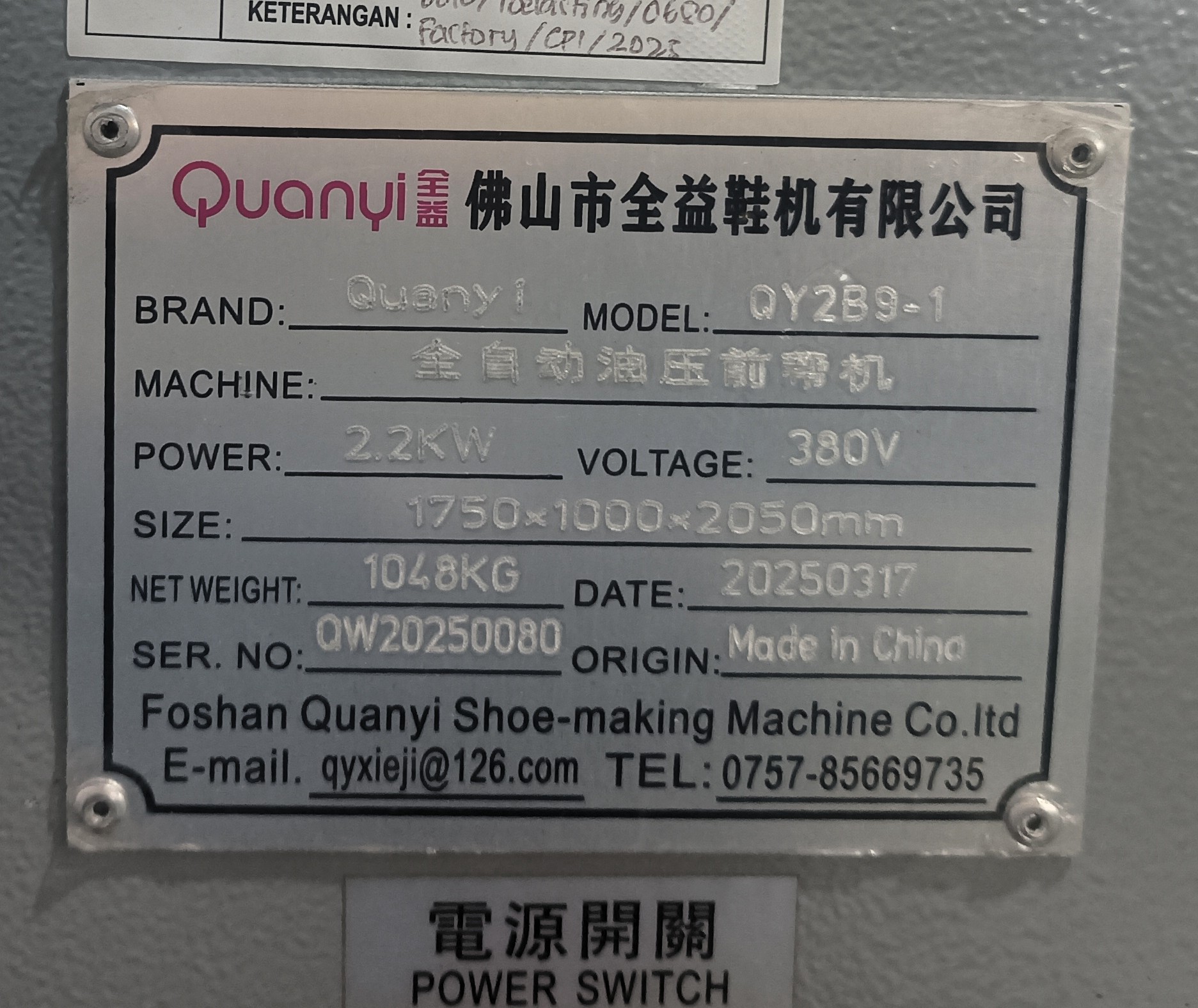 | Spesification | Power : 2 kW, Voltage : AC 380 Volt/ 50 Hz, Weight : 300 kg, Dimension (l*w*h) : 1680*980*1980 mm, Capacity : 1500pairs/10H, Oil pressure : 30-50 kg/cm² |