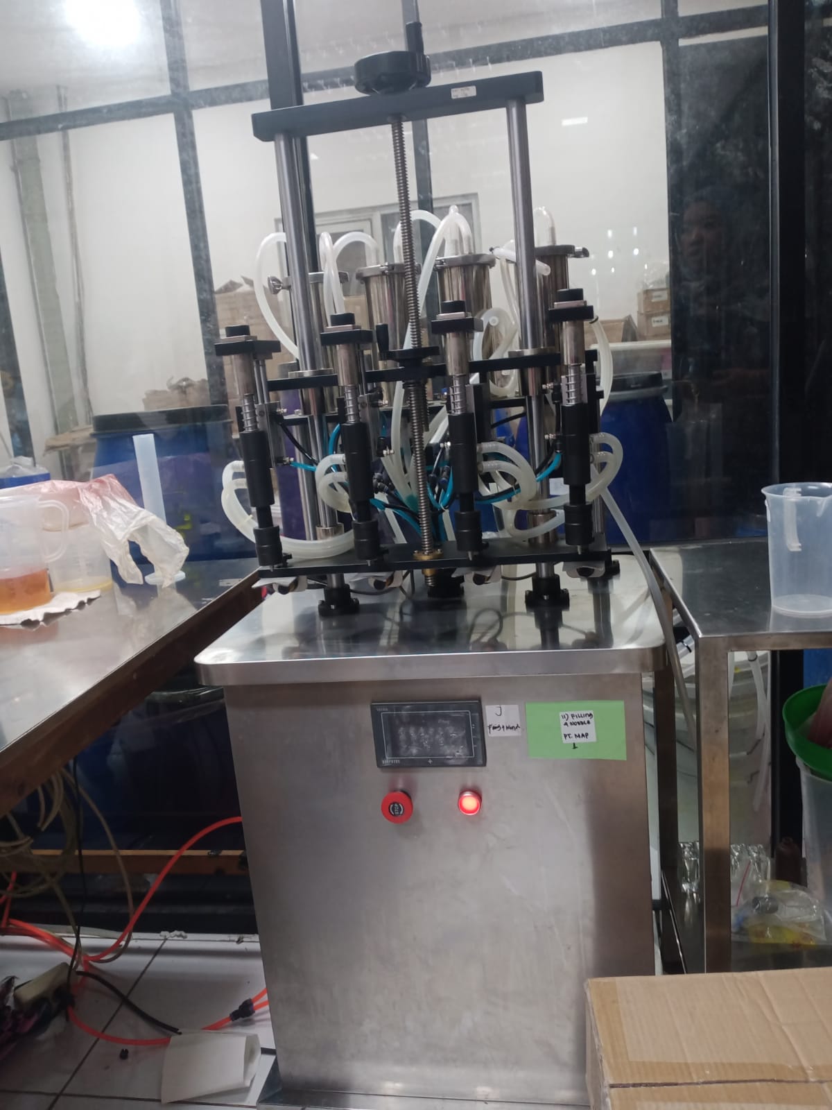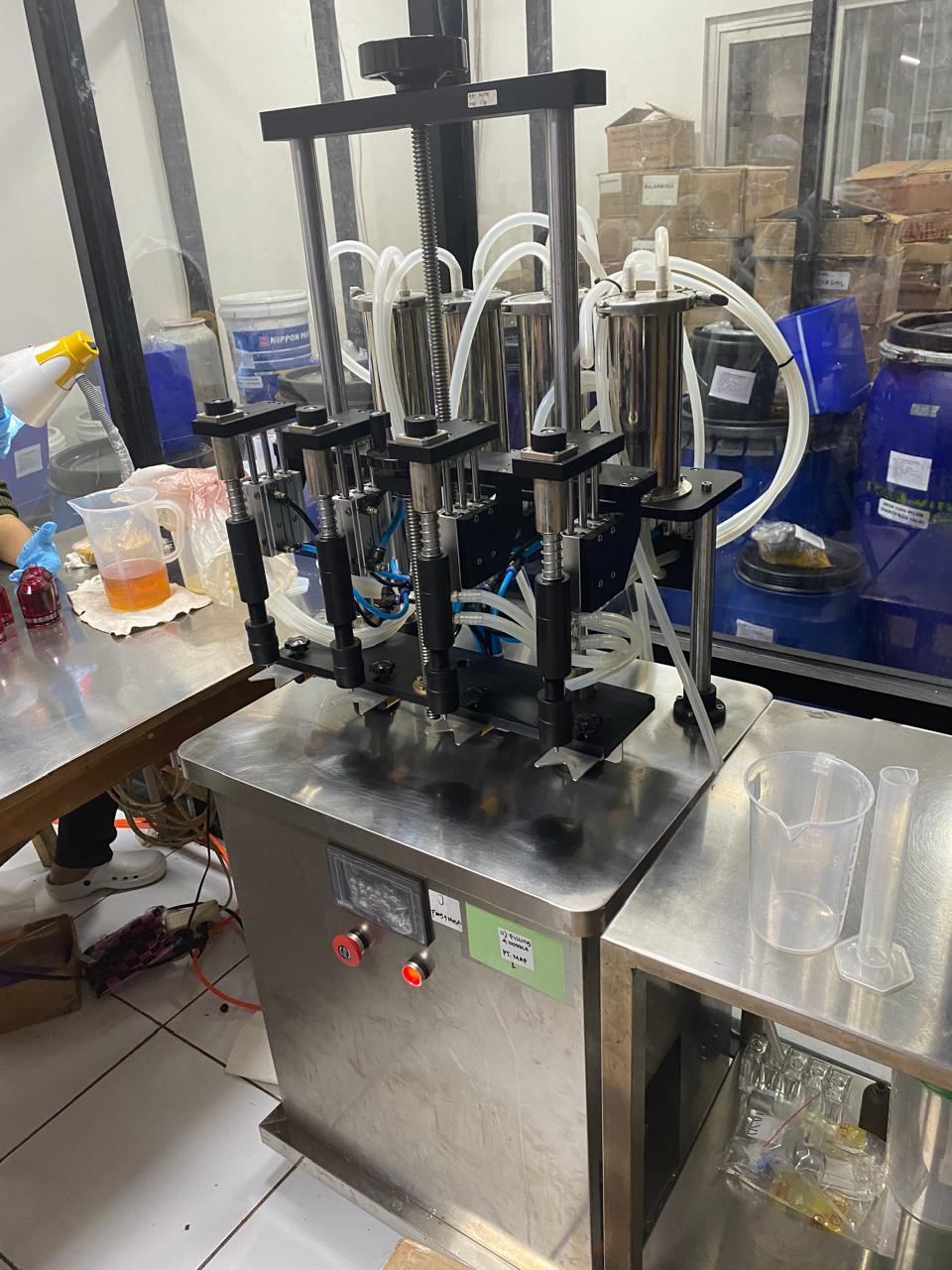Kecepatan pengisian : 20-40 botol/menit, Kapasitas pengisian : 10-50 ml/menit, Jenis cairan : cairan normal/ cairan berbusa, Tinggi botol : 50-300 mm, Diameter botol : 15-100 mm, Jumlah nozzle : 4 nozzle, Tegangan listrik 220V 50/60Hz