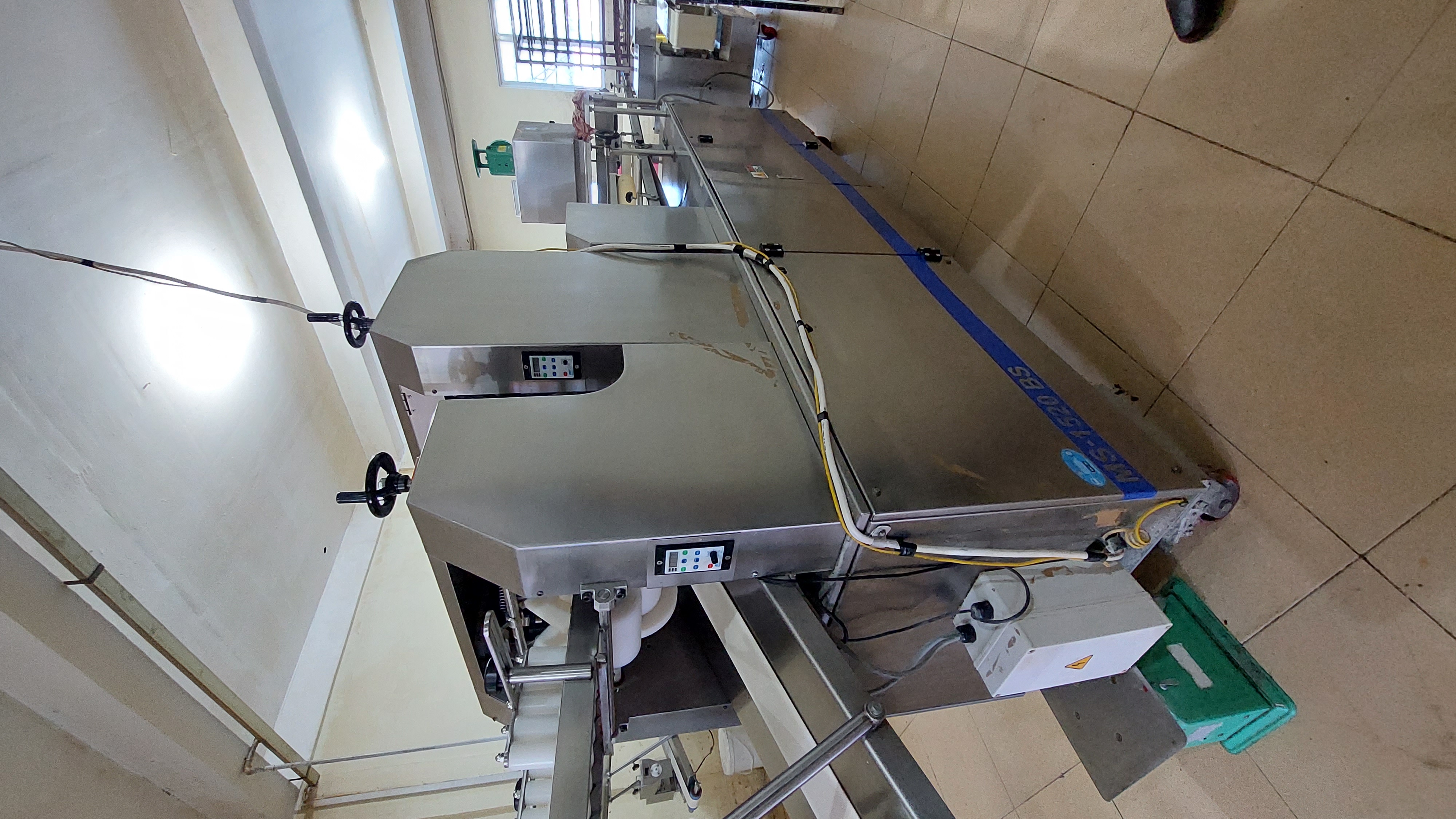 Power : 5.260 Kw, Dimensi : 7380 x 1100 x 1690 mm, Berat : 1070 Kg, Material : stainless steel, Kap: 100 pcs/ jam